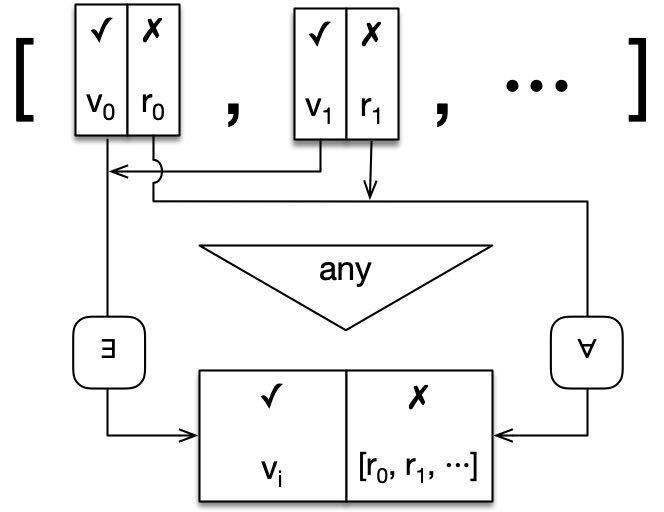 Promise.any() returns a Promise p. How it is settled, depends on the parameter promises (which refers to an iterable over Promises):